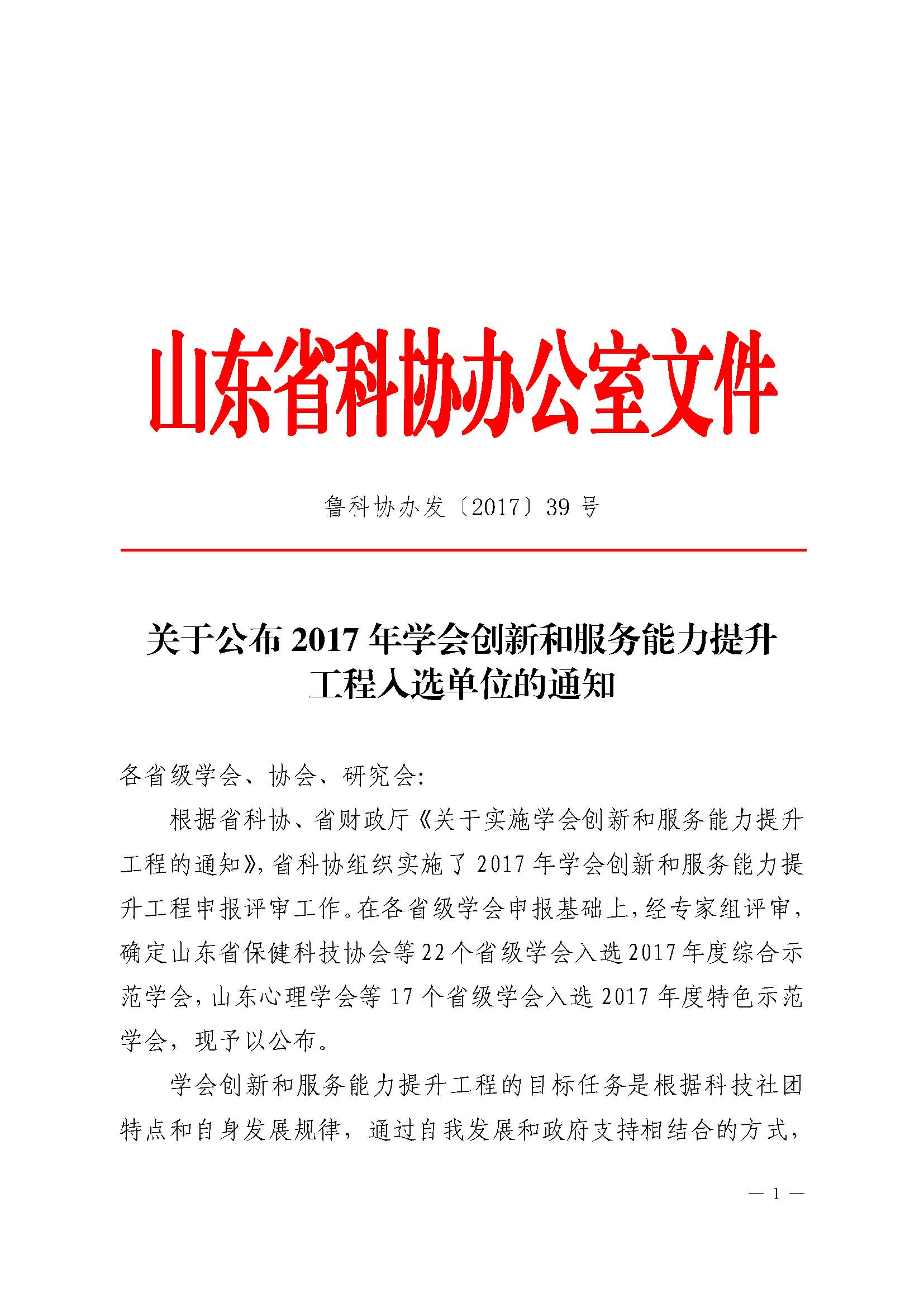 关于公布2017年学会创新和服务能力提升工程入选单位的通知