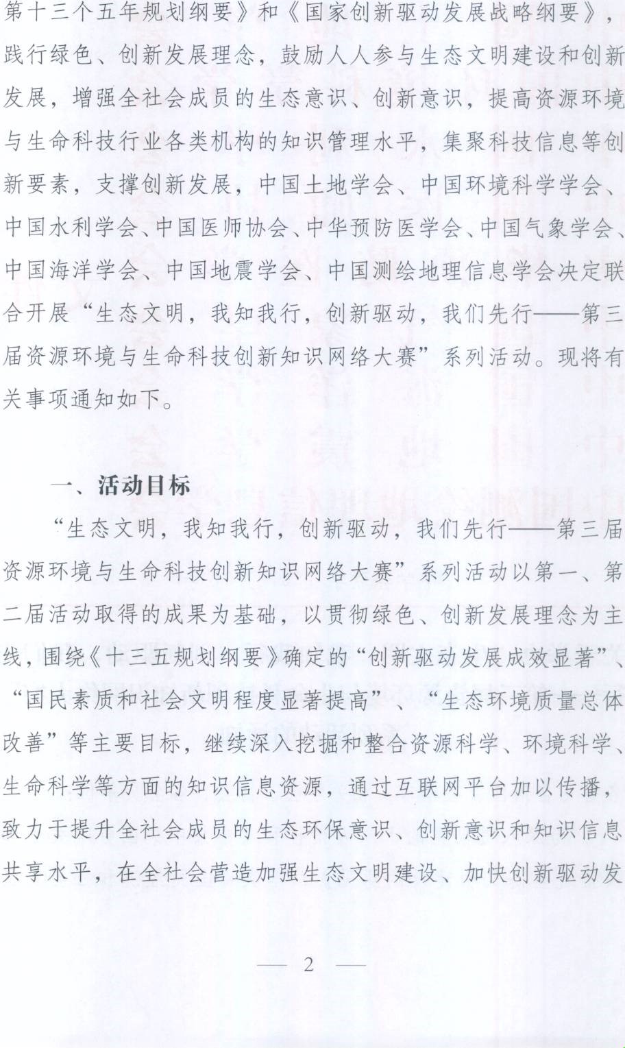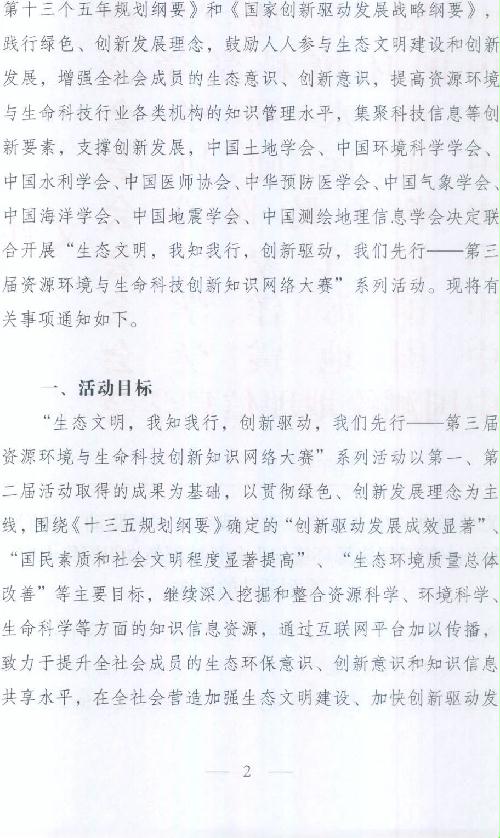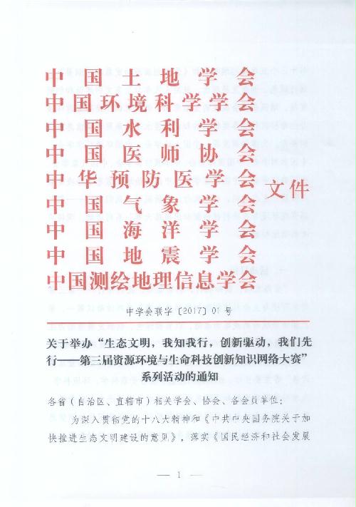 关于举办“生态文明,我知我行,创新驱动,我们先行—第三届资源环境与生命科技创新知识网络大赛”系列活动的通知